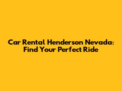 Car Rental Henderson Nevada: Find Your Perfect Ride
