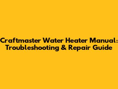 Craftmaster Water Heater Manual: Troubleshooting & Repair