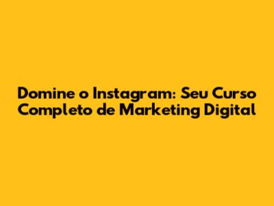 O Instagram transformou-se em uma plataforma essencial para empresas e criadores de conteúdo que buscam alcançar um público amplo e construir uma marca forte. Se você está começando ou deseja aprimorar suas habilidades de marketing digital no Instagram, este curso é o ponto de partida ideal. Vamos explorar estratégias eficazes, dicas práticas e as ferramentas certas para você dominar o Instagram e obter resultados reais. Prepare-se para elevar seu jogo e conquistar o sucesso que você sempre sonhou!