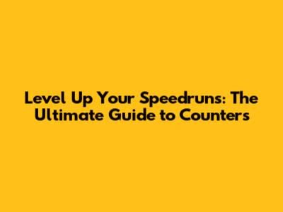 Level Up Your Speedruns: The Ultimate Guide To Counters